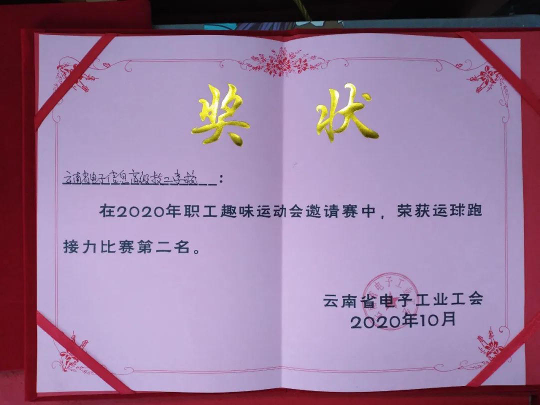 本次比賽是由云南省電子工業(yè)工會主辦,旨在歡慶祖國71華誕,增強職工團隊意識和凝聚力,活躍廣大職工業(yè)余文化生活,倡導教職工積極參與健身活動。經(jīng)過激烈角逐,最終我校榮獲了此次職工趣味運動會氣排球賽的第一名。