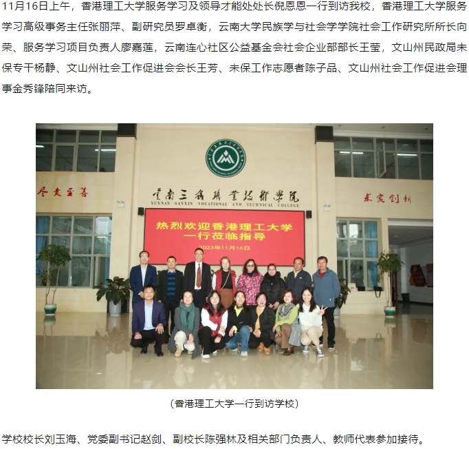 香港理工大學(xué)一行十人到訪云南三鑫職業(yè)技術(shù)學(xué)院