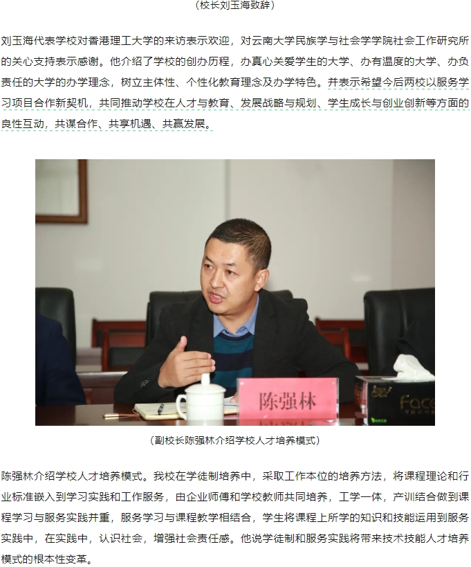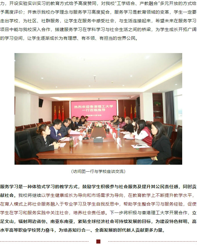 香港理工大學(xué)一行十人到訪云南三鑫職業(yè)技術(shù)學(xué)院
