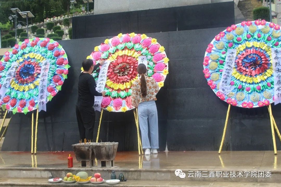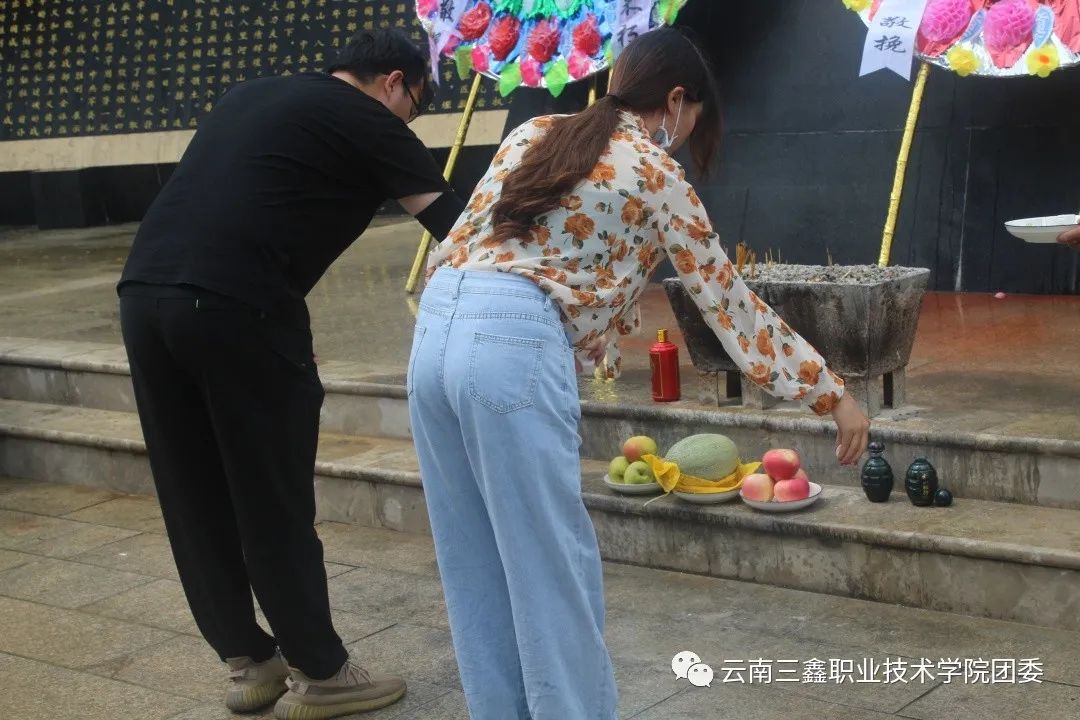 首先由學(xué)院團(tuán)委書記王家琛老師和李慶妹老師帶領(lǐng)我們向烈士們默哀、獻(xiàn)煙,敬酒。