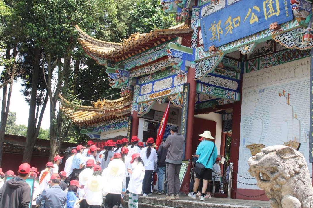 大家從公園北大門進(jìn)入,首先看到的是長(zhǎng)梯兩側(cè)鄭和七下西洋的浮雕,再現(xiàn)大航海家鄭和的生平和業(yè)績(jī),隨后一一參觀了鄭和塑像、三寶樓、馬哈只墓、鄭和紀(jì)念館、鄭和博物館、鄭和故居等。