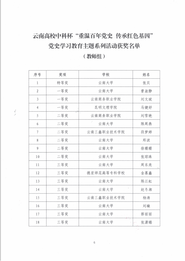 熱烈祝賀我院教師段夢婷、楊濤喜獲云南高校中科杯“重溫百年黨史 傳承紅色基因”黨史學(xué)習(xí)學(xué)習(xí)主題教育系列活動(dòng)二、三等獎(jiǎng)。